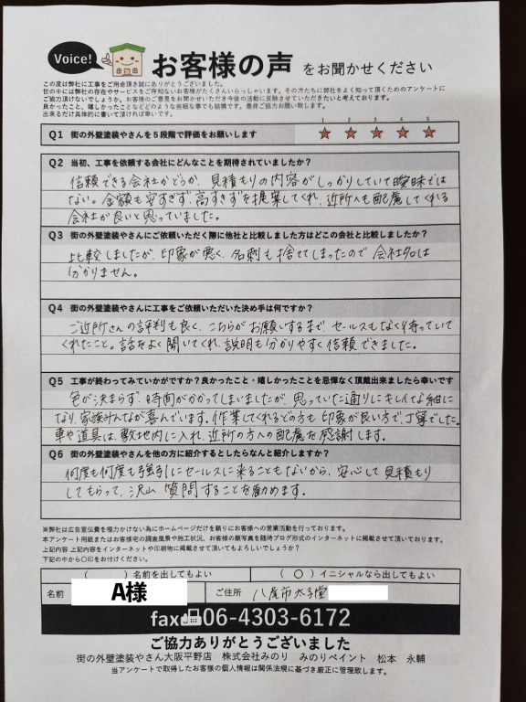 八尾市 外壁工事の口コミ3選!街の外壁塗装やさん大阪平野店